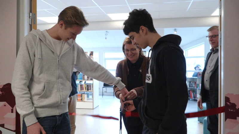 Band klipptes och tal hölls inför elever och personal i det nyrenoverade biblioteket, som nu blivit en central del av skolans pedagogiska verksamhet.
